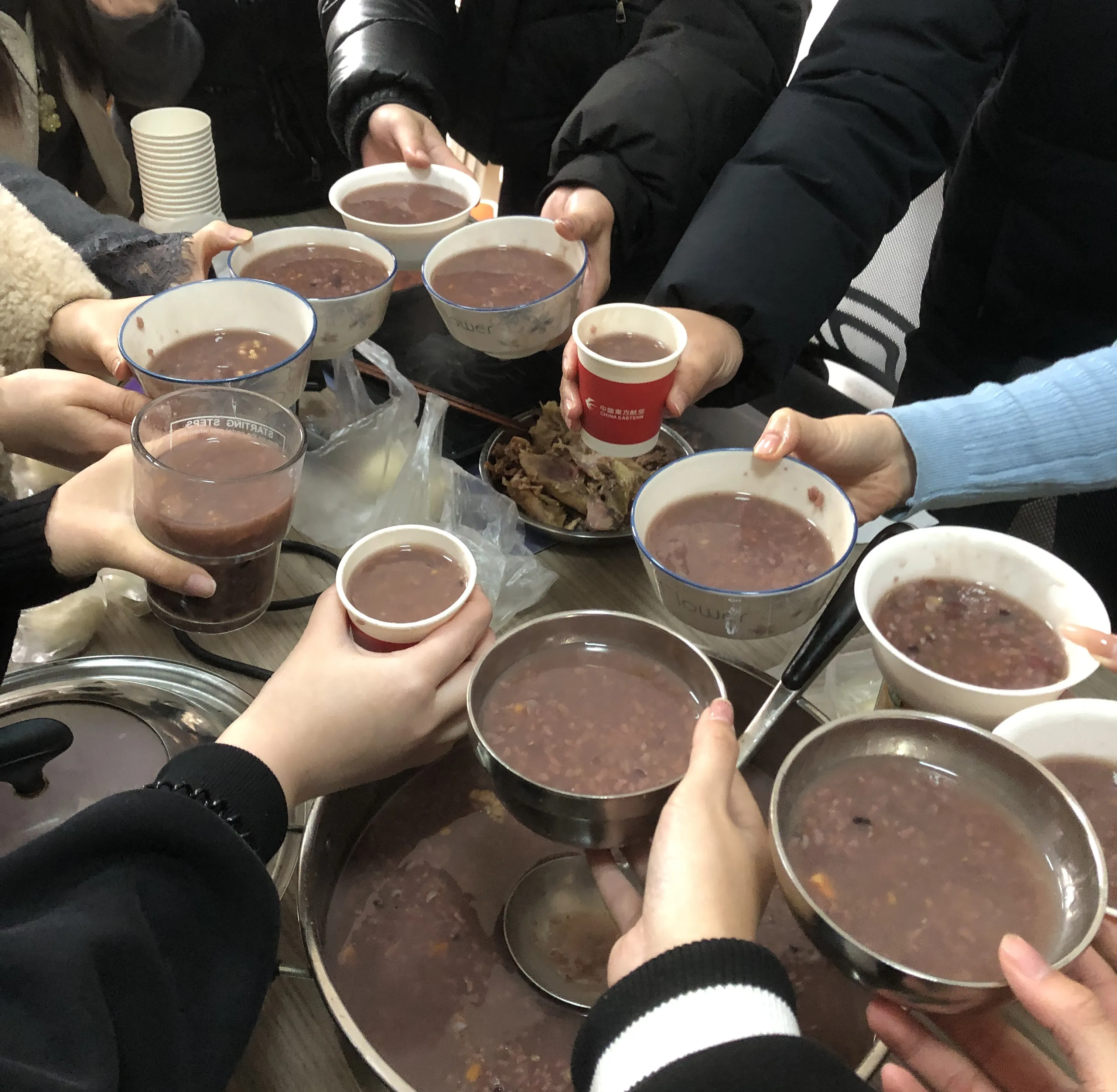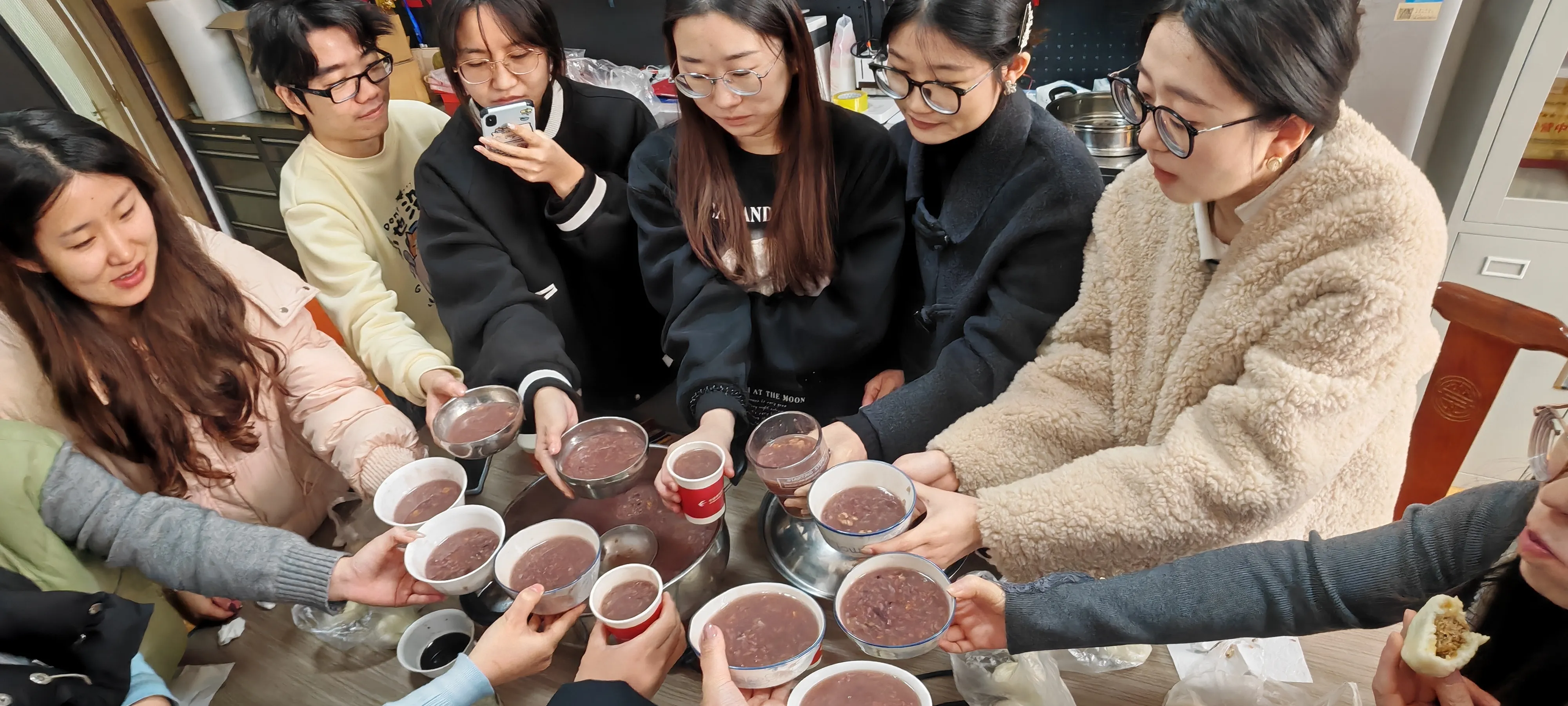 Tại Công ty Haozhifeng, nhân viên đã chuẩn bị nguyên liệu vào buổi sáng và tự tay làm món Cháo Laba. Buổi trưa, mọi người cùng nhau thưởng thức món Cháo Laba nóng hổi cùng bánh bao hấp, cùng nhau chia sẻ những khoảnh khắc vui vẻ. Cầu mong toàn thể nhân viên của Công ty Haozhifeng luôn vui vẻ và an toàn trong suốt mùa đông này.
